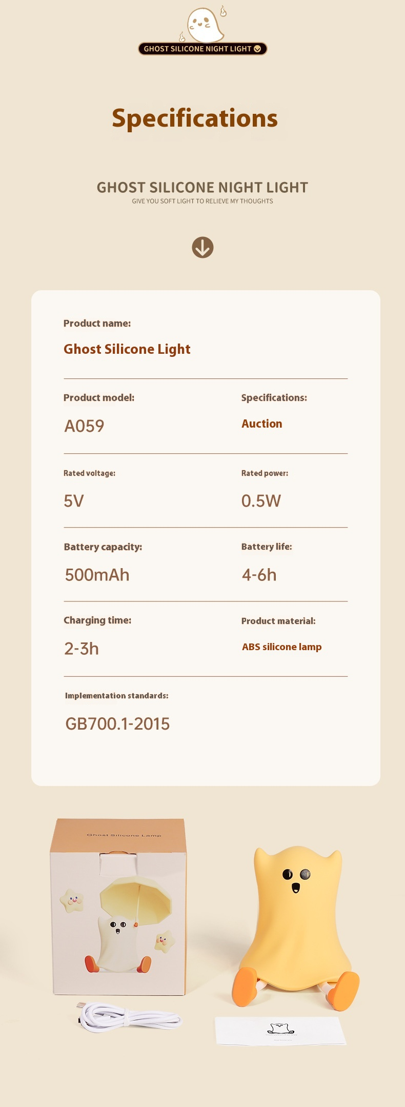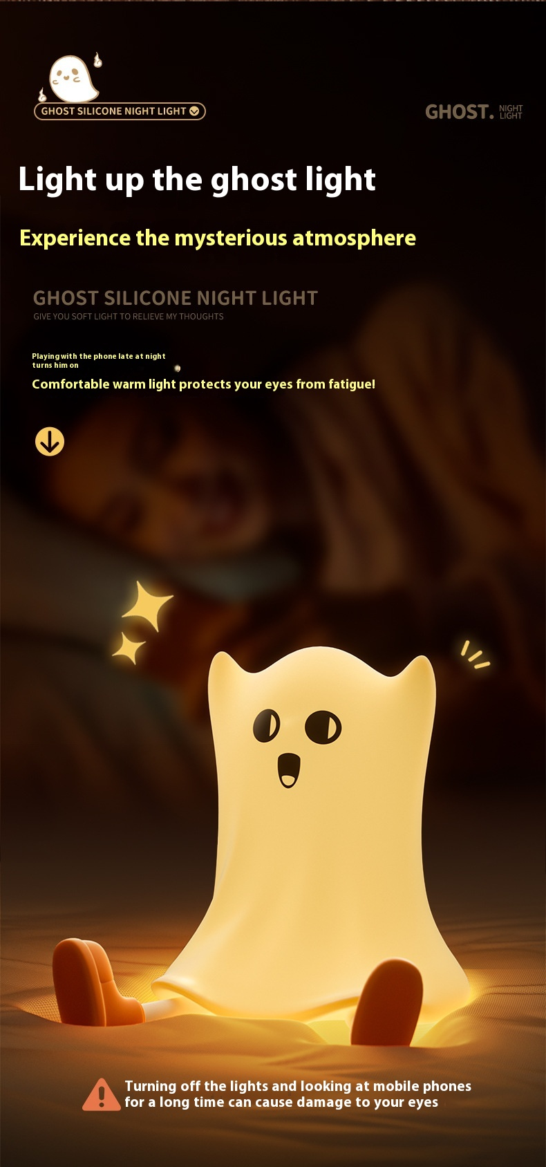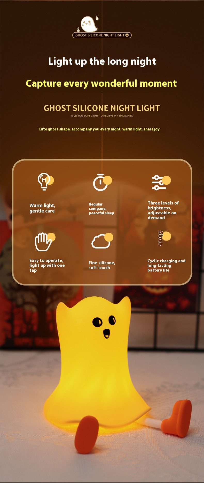 Halloween Silicone Ghost Shaped Bedside Lamp With Touch Control Soft Glow For Water-resistant Decoration